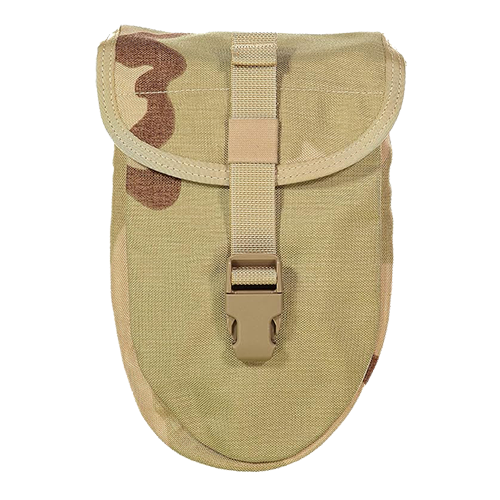 An entrenching tool cover securely stores and protects essential tools for digging defensive positions and survival, ensuring readiness and effectiveness in combat situations.